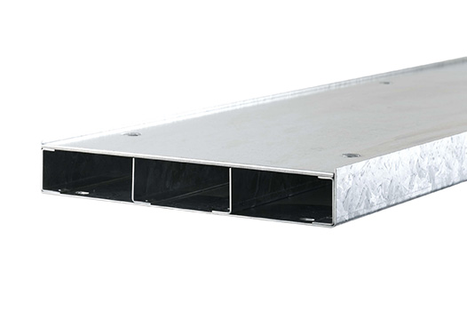 Flytec flush floor trunking body is supplied in 2 metre lengths complete with 2 x I metre lengths of lid secured by means of flush, and all steel turn buckle fasteners. Each length of trunking is supplied with one external fitting connector.